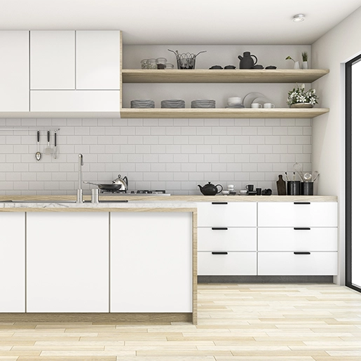 closets y mobiliario modular. Es una excelente opción cuando se busca amplitud visual y facilidad de combinación con maderados