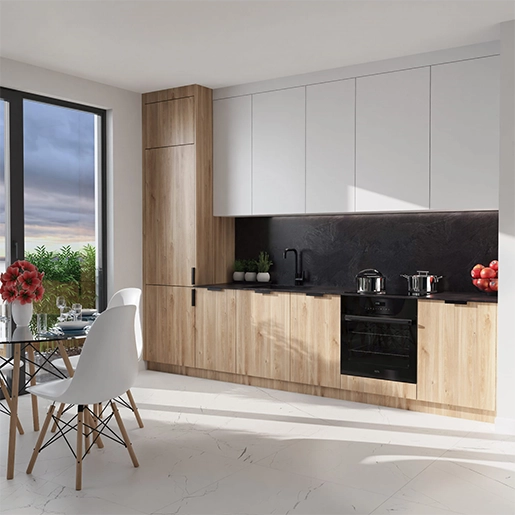 - Acabado: PW Pure Wood (Inspirada en el elegante acabado de una chapa barnizada esta textura proporciona un acabado mate sedoso que expone el sutil brillo de los poros de las vetas de la madera)